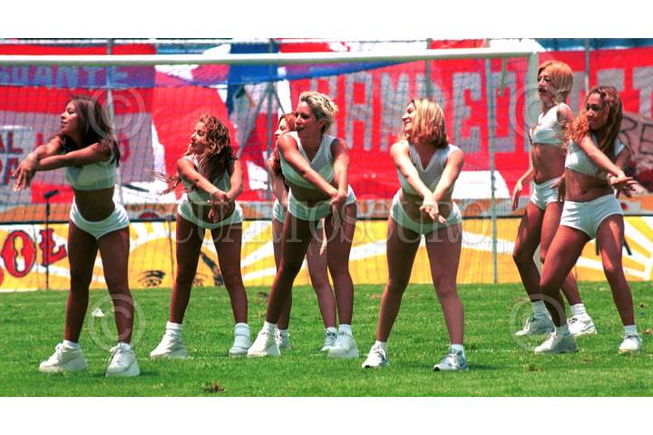 El equipo de animación de la Máquina Cemntera de Cruz Azul en su intervención de medio tiempo. FOTO: Pedro Mera/CUARTOSCURO.COM