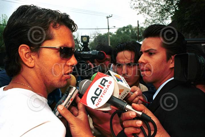 MÈXICO, D.F. 31ENERO2006.- Cesáreo Victorino del equipo Pumas platicó con los medio momentos antes de comenzar el entrenamiento en la cancha del estadio Olimpico de CU. FOTO:Miriam Sánchez/CUARTOSCURO.COM