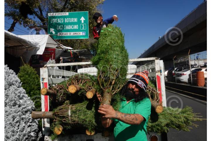 CIUDAD DE MÉXICO, 23NOVIEMBRE,2024.- Comerciantes del Mercado de Jamaica ofrecen a la vente árboles naturales para las fiestas decembrina. Los precios oscilan desde los 500 pesos, hasta los mil 800 pesos. FOTO: MAGDALENA MONTIEL/CUARTOSCURO.COM