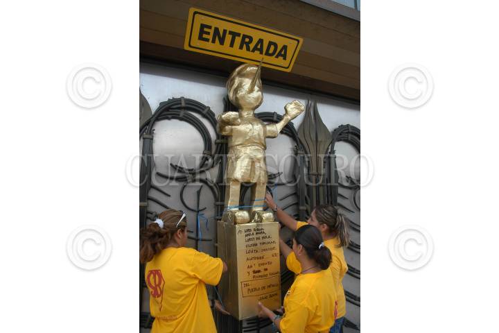 MEXICO D.F. 12JUIO2006.– Simpatizantes de Andres Manuel Lopez Obrador, candidato a la presidencia de la republica de la coalicion, Por el Bien de Todos, colocaron una figura de carton que la denominaron el Pinocho de Oro a las afueras de las instalaciones de Televisa protesta informacion impugnacion de las elecciones. FOTO: Guillermo Perea/CUARTOSCURO.COM