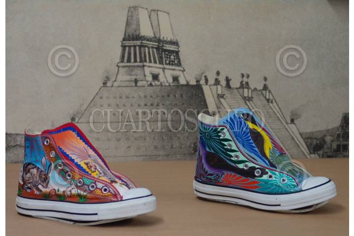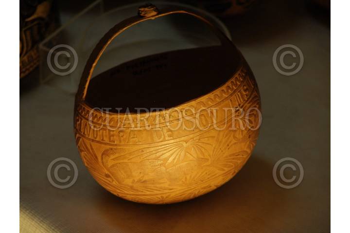 MÉXICO, D.F., 01ABRIL2009.- Jícaras labradas de los años 30 y 50, grabados en litografías y una decena de tenis “coloreados”, muestran la continuidad cultural de Pinotepa de Don Luis, Oaxaca. Esta piezas forman parte de la exposición que permanecerá dos meses a partir del 3 de abril, en el vestíbulo de la sala etnográfica Pueblos indios del sur del Museo Nacional de Antropología. La muestra temporal se compone de 40 cuencos labrados, parte de la colección histórica del MNA y algunos de las cuales datan de los años 30, seis grabados en litografías y una decena de tenis “coloreados” por miembros de Grabadores Mixtecos Unidos A.C., para Converse de México, dentro del proyecto conjunto: Pintando pasos. FOTO: INAH/CUARTOSCURO.COM