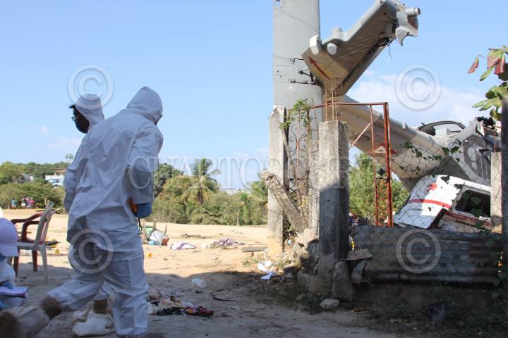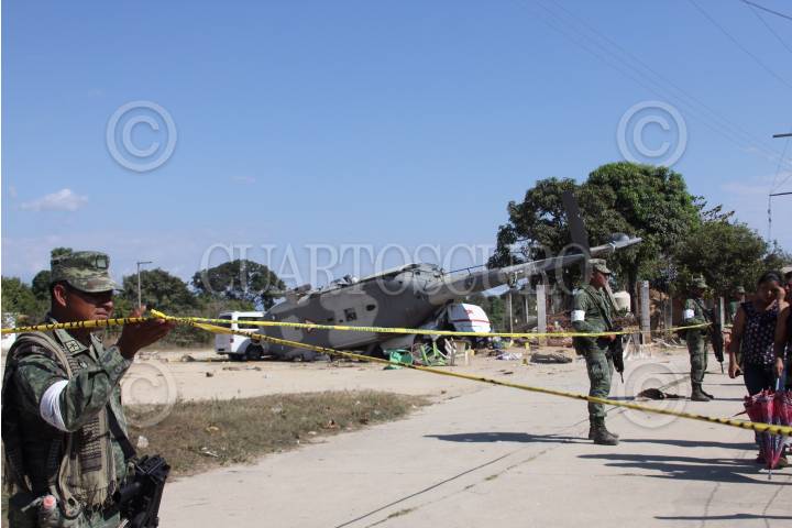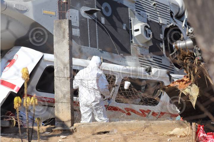 SANTIAGO JAMILTEPEC, OAXACA, 17FEBRERO2018.- La noche de este viernes se desplomó en la comunidad de Santiago Jamiltepec un helicóptero del Ejército Mexicano en el que viajaba el secretario de Gobernación, Alfonso Navarrete Prida y el gobernador, Alejando Murat acompañados de diversos funcionarios, sin embargo la aeronave se desplomó estando a 40 metros sobre el aire cayendo sobre tres camionetas de transporte provocando el deceso de 13 personas. Al lugar arribaron peritos de la Procuraduría General de la República para iniciar con las investigaciones. FOTO: EDGAR CASTELLANOS/ CUARTOSCURO.COM