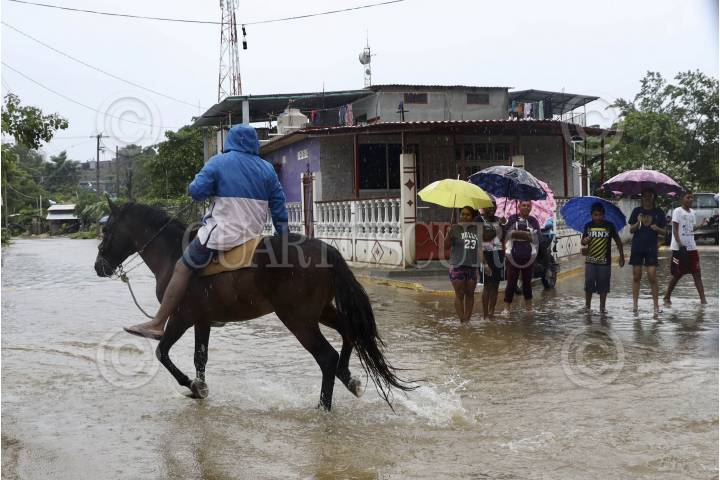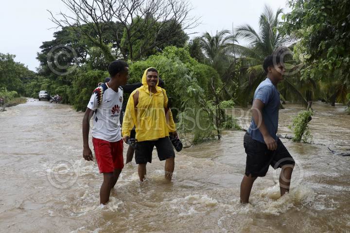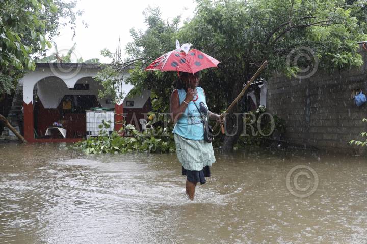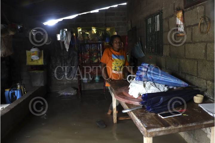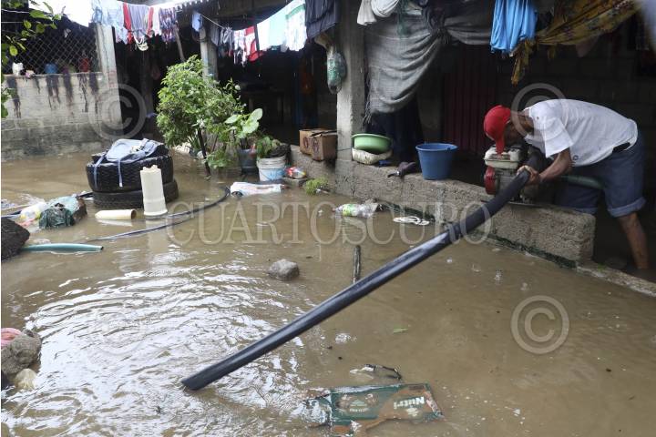 SANTIAGO PINOTEPA NACIONAL, OAXACA, 25SEPTIEMBRE2024.- Habitantes de la localidad de Collantes, pueblo afromexicano perteneciente al municipio de Santiago Pinotepa Nacional en la costa de Oaxaca, han sido afectados por las constantes lluvias que han dejado los remanentes del huracán John. Por la mañana el Río La Arena se desbordó inundando viviendas, algunas personas se trasladaron a la cancha de la población para resguardarse. La Coordinación Estatal de Protección Civil y Gestión de Riesgos informó que se pronostican 5 días de lluvias constantes en la entidad. FOTO: CAROLINA JIMÉNEZ/CUARTOSCURO.COM