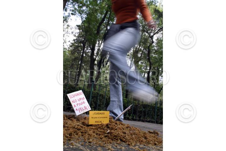 MÉXICO D.F. 08SEPTIEMBRE2006.- Un sipatizante del excandidato ala presidencia Andrés Manuel López Obrador, colocó un letrero en escremento de caballo, con la leyenda "Cuidado no Vaya a Pisar al Presidente" durante un mitin en apoyo a su excandidato en el Hemiciclo a Benito Juárez. FOTO: GUILLERMO PEREA/CUARTOSCURO.COM
