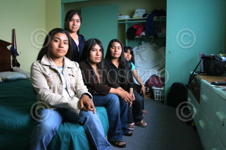 OXNARD, CALIFORNIA. E.U.A. 29 de Mayo de 2006.- La Familia Díaz, indigenas mistecos provenientes de Oaxaca, dermen y viven en juntas en una casa de Oxnard, se dedican a recolectar fresas, en este condado. La familia de Guillermina Ortiz Diaz, la conforman sus hijas Graciela, Eliadora, y su madre Bernardina Diaz Martinez, y su hermana Ana Lilia. FOTO: David Bacon/CUARTOSCURO.COM