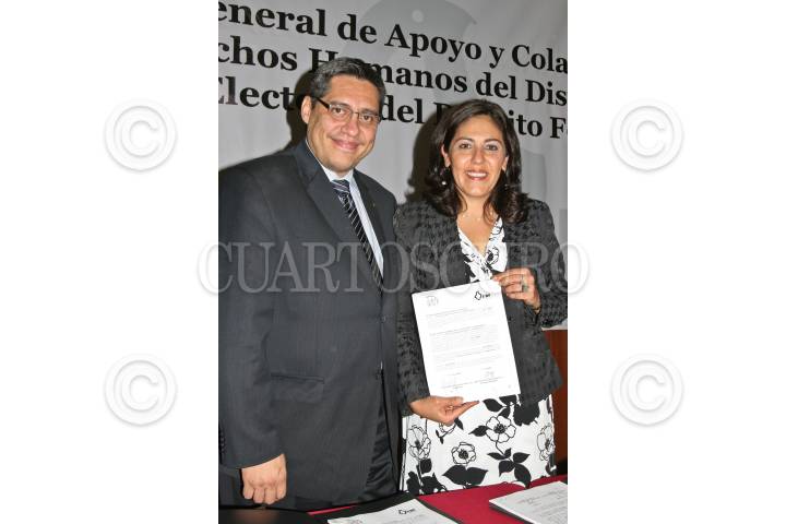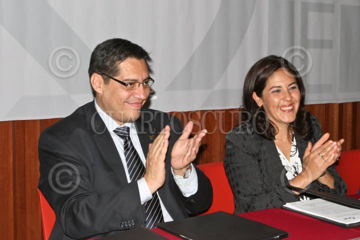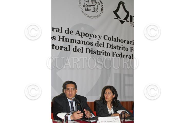MÉXICO, D.F. 08SEPTIEMBRE2010.- Luis González Placencia, presidente de la Comisión de derechos Humanos del Distrito Federal (CDHDF) y Claudia Zavala Pérez, presidenta del Instituto Electoral del Distrito Federal (IEDF), firmaron un convenio de colaboración entre estas dos dependencias de gobierno. FOTO: MISAEL VALTIERRA/CUARTOSCURO.COM