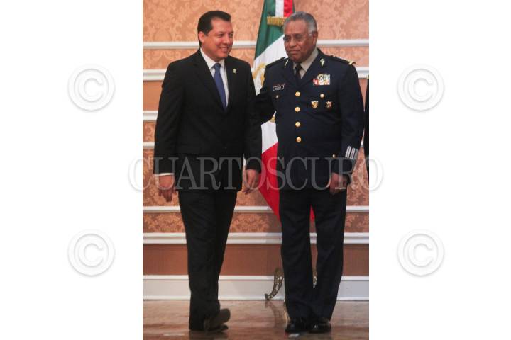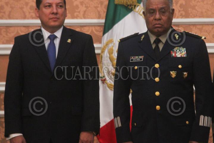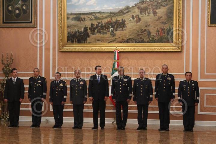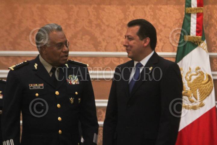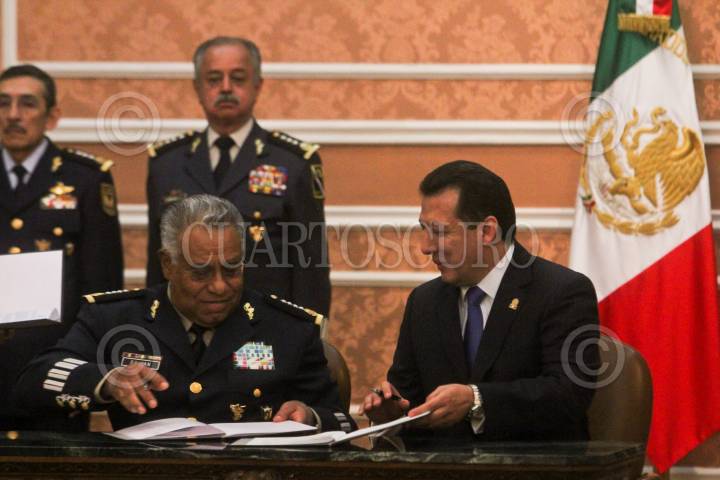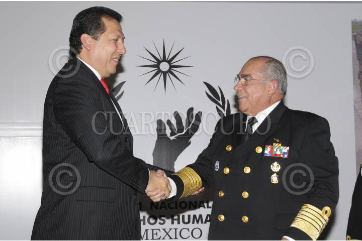 MÉXICO, D.F., 12MAYO2011.- Guillermo Galvan Galvan, Secretario de la Defensa Nacional junto a Raúl Plascencia Villanueva, Presidente de la Comisión Nacional de los Derechos Humanos durante la ceremonia de firma de convenios entre la SEDENA Y la CNDH. FOTO: ENRIQUE ORDÓÑEZ/CUARTOSCURO.COM