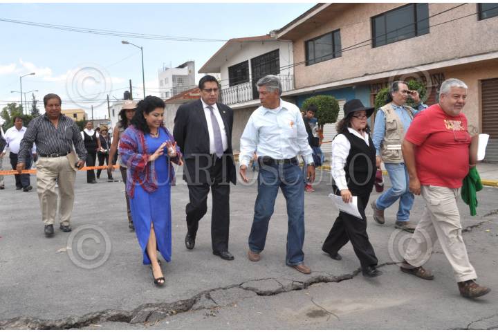 MÉXICO, D.F., 26JULIO2011.- Luis González Placencia, presidente de la Comisión de Derechos Humanos del DF, y Clara Brugada, jefa delegacional en Iztapalapa, recorrieron diferentes zonas afectadas por grietas, hundimientos e inundaciones en en la demarcación. FOTO: CUARTOSCURO.COM