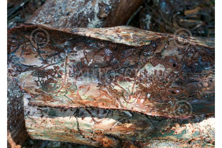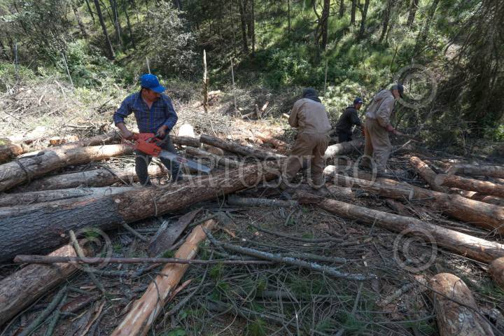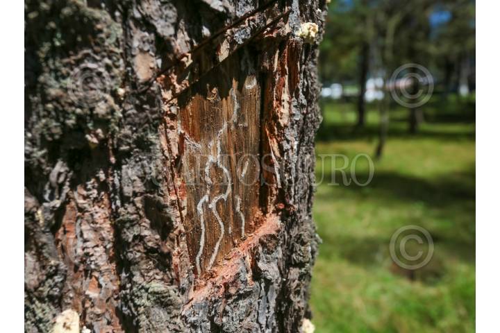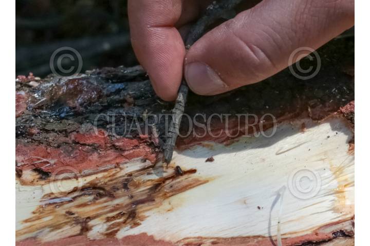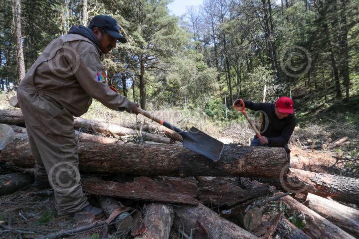 SAN ANDRÉS TIMILPAN, ESTADO DE MÉXICO, 07NOVIEMBRE2024.- El gusano descortezador es un insecto que vive bajo la corteza de los árboles y se alimenta del tejido que transporta los nutrientes, se ha convertido en un gran problema en el Estado de México, actualmente se han visto afectadas 6 mil hectáreas de bosque en la entidad, aparece cuando los árboles se encuentran débiles por la sequía, tala e incendios forestales, a pesar de los trabajos de combate de plagas realizados parte de PROBOSQUE la problemática aumentó este año por el cambio climático, que ni las lluvias permitieron controlarlo, para eliminar la plaga se realiza un informe técnico fitosanitario, se derriba el árbol, se secciona y descorteza, se aplica insecticida autorizado por COFEPRIS, se fumiga, y en algunos casos llegan a la quema del mismo. Hacen un llamado a los ejidatarios, dueños de predios para mantener vigilancia en los bosques y poder detectar árboles enfermos. FOTO: CRISANTA ESPINOSA AGUILAR /CUARTOSCURO.COM