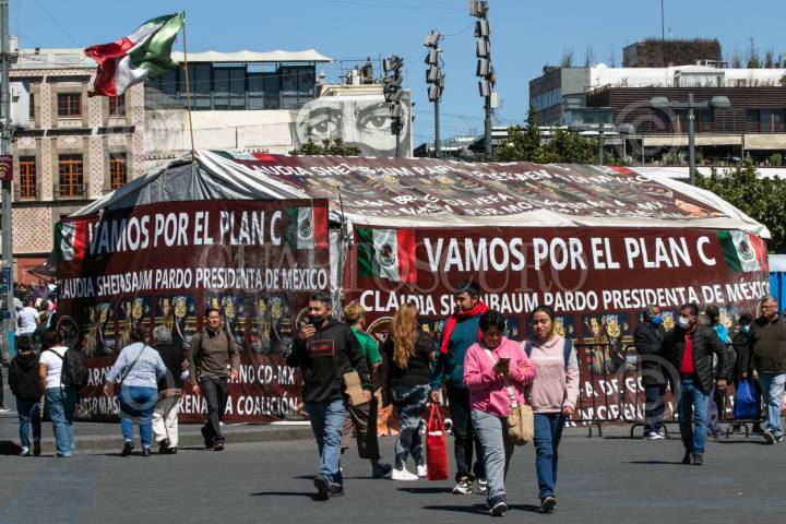 CIUDAD DE MÉXICO, 05FEBRERO2024.-Una carpa de apoyo a las reformas constitucionales que ha emprendido el Ejecutivo, además de la candidatura presidencial de Claudia Sheinbaum. FOTO: MOISÉS PABLO/CUARTOSCURO.COM
