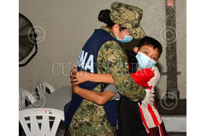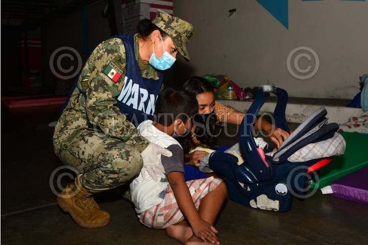 Personal de la Marina han implementando albergues en donde conviven con los niños cuyas casas resultaron afectadas por las inundaciones en Tabasco.