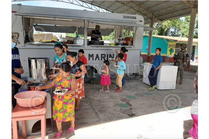 Un comedor de la Marina brinda raciones a la población que fue afectada por las inundaciones en Tabasco.