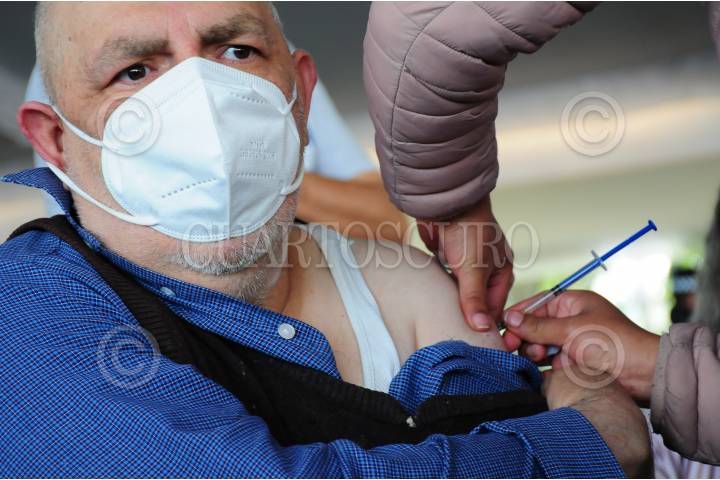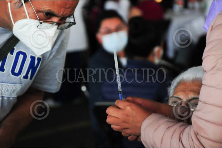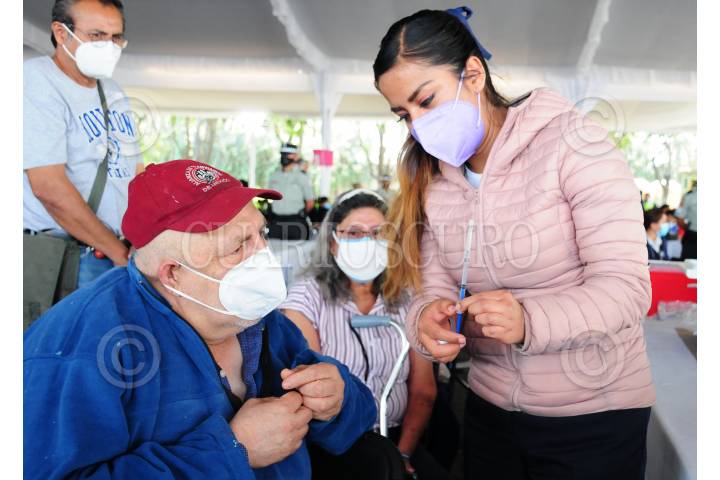 Un adulto mayor de Iztapalapa es inmunizado contra el Covid-19.