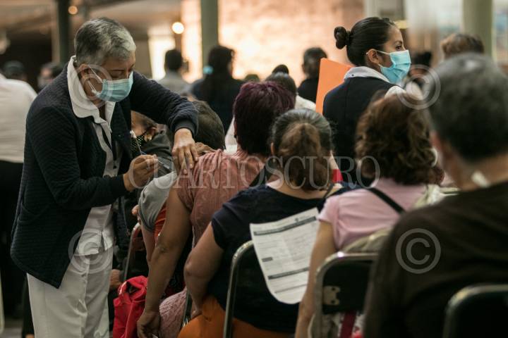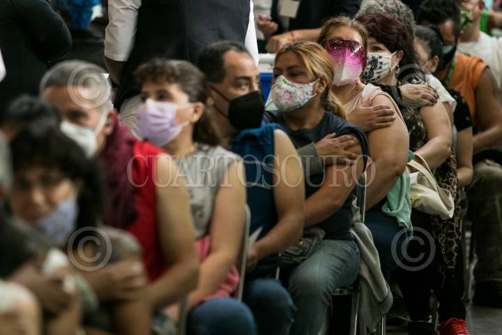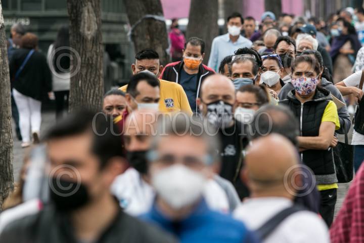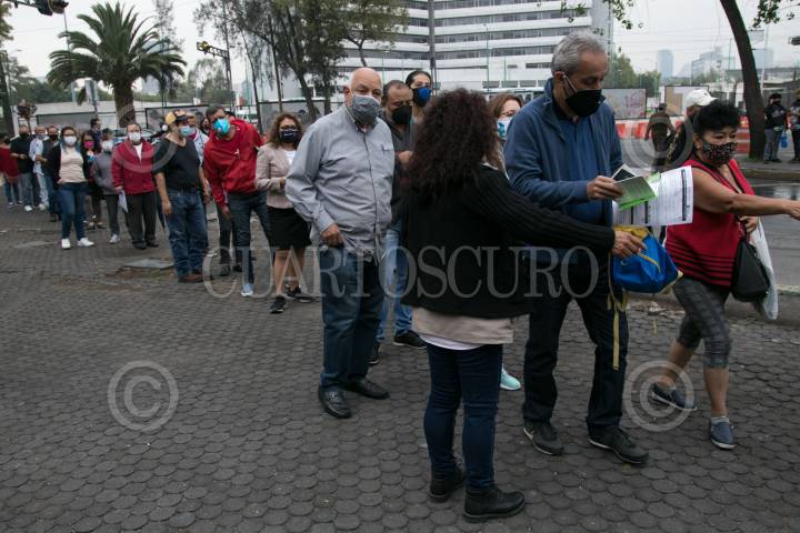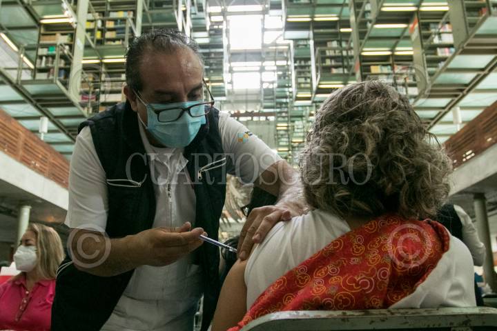 Personas de 50 a 59 acudieron a la Biblioteca Vasconcelos, en la alcaldía Cuauhtémoc, para ser inmunizados contra la Covid-19.