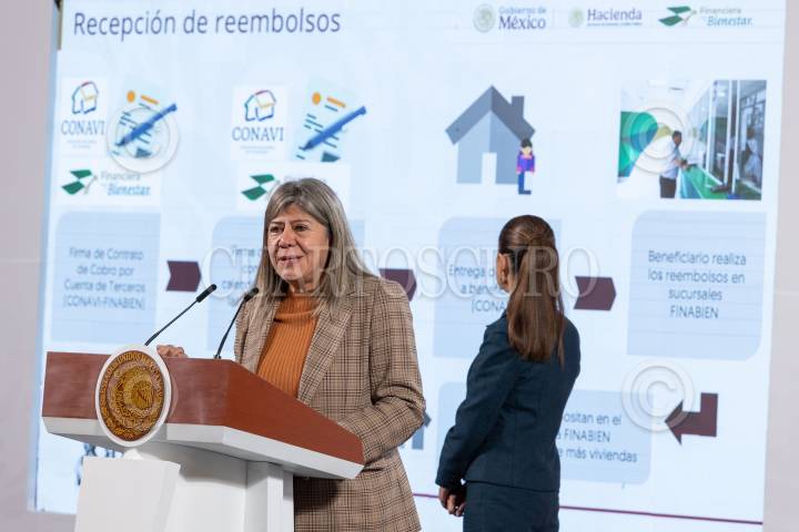 CIUDAD DE MÉXICO, 27ENERO2025.- María del Rocío Mejía Flores, directora general de Financiera para el Bienestar, Rodrigo Chávez Contreras, titular de la Conavi, durante la presentación del Plan Nacional de Vivienda que pretende edificar un millón de casas. FOTO: MOISÉS PABLO/CUARTOSCURO.COM