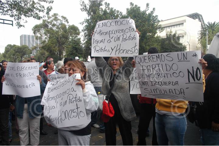 MÉXICO, D.F., 10NOVIEMBRE2011.- Perredistas del distrito X se manifestaron afuera de la sede del Partido de la Revolución Democrática par exigir transparencia en las elecciones internas que se celebraron el domingo pasado, en donde se eligieron a los nuevos consejeros. Los manifestantes llevaban pancartas y bloquearon por lo menos media hora el transito vehicular del Eje 4. FOTO: IVÁN MENDEZ/CUARTOSCURO.COM