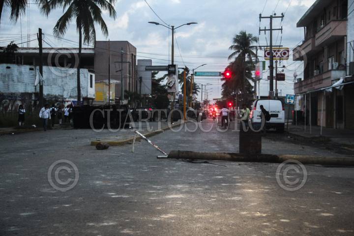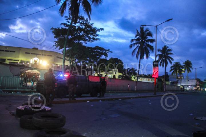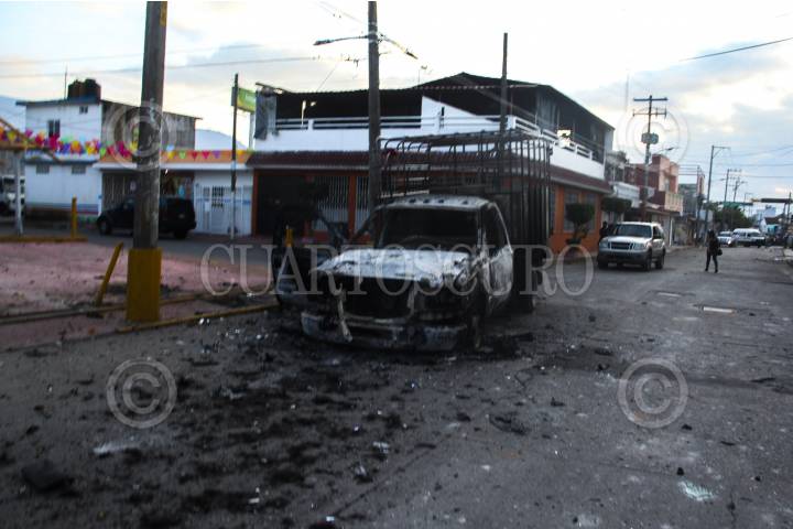 CARDENAS, TABASCO, 13OCTUBRE2015.-Diez y seis lesionados, tres baleados y tres vehículos quemados es el saldo de un enfrentamiento entre miembros de la planilla azul contra la roja en su afan de imponer su líder en las elecciones para dirigente de la sección 26 de PEMEX. El suceso inicio a las cinco de la mañana sobre la calle Jacinto Lopez esquina avenida Lazaro Cardenas por lo que miembros del 57 Batallon de Infantería tratan de resguardar el orden. FOTO: MARCO POLO GUZMAN HERNANDEZ/CUARTOSCURO.COM
