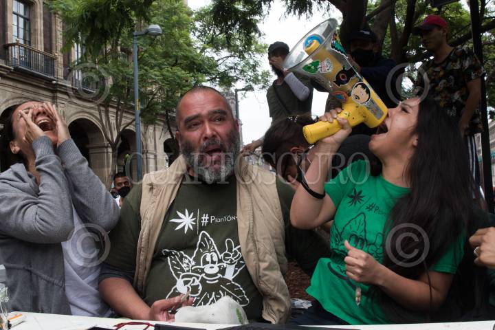 Ciudadanos consumidores de mariguana celebraron la declaratoria de inconstitucionalidad sobre la prohibición del uso lúdico y recreativo de la mariguana, frente la Suprema Corte de Justicia de la Nación (SCJN). En la imagen José Rivera, director del Movimiento Cannábico Mexicano.