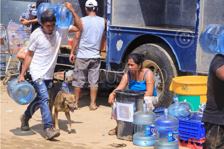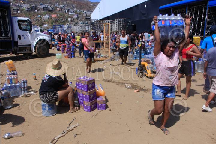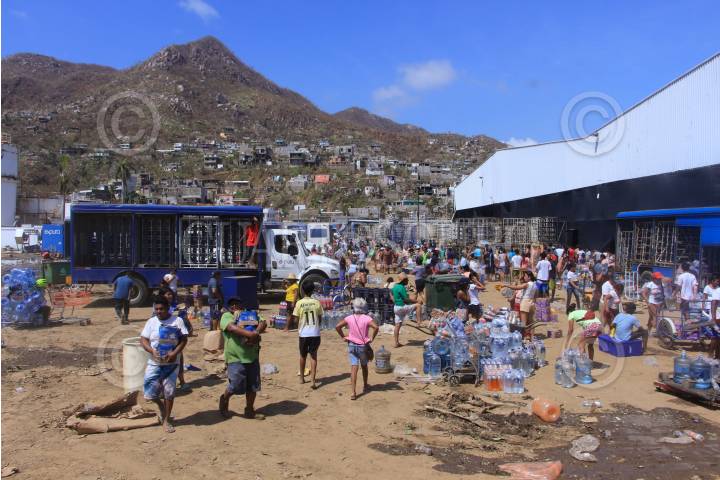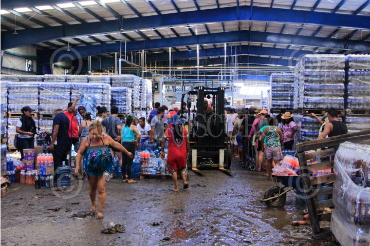 ACAPULCO, GUERRERO, 27OCTUBRE2923.- Vecinos de las colonias de la periferia de Acapulco, buscan con desesperación agua, juegos y refrescos, en una planta, luego del desabasto provocado por los dañados casados por el huracán Otis de categoría 5. FOTO: CARLOS ALBERTO CARBAJAL/CUARTOSCURO.COM