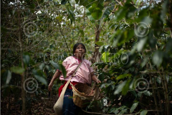 ALDAMA, CHIAPAS, 02MARZO2024.- El estado chiapaneco es de los tres principales productores a nivel nacional de café. En los últimos años se ha coronado dentro de los certámenes nacionales en los primeros lugares. En San Pedro Cotzilnam muchas de las familias son productoras de café y cada año cosechan cientos de kilos de café que después venden entre los 21 pesos y 45 pesos el kilo de fruto despulpado y seco a intermediarios que distribuyen el café a nivel nacional e internacional, dependiendo de la calidad del fruto o los alcances del vendedor. En esta comunidad principalmente se siembran las variedades de caturra, bourbon y arábica, algunas de estas plantas fueron sembradas hace más de 35 años y aún se siguen cosechando. FOTO: ISABEL MATEOS /CUARTOSCURO.COM