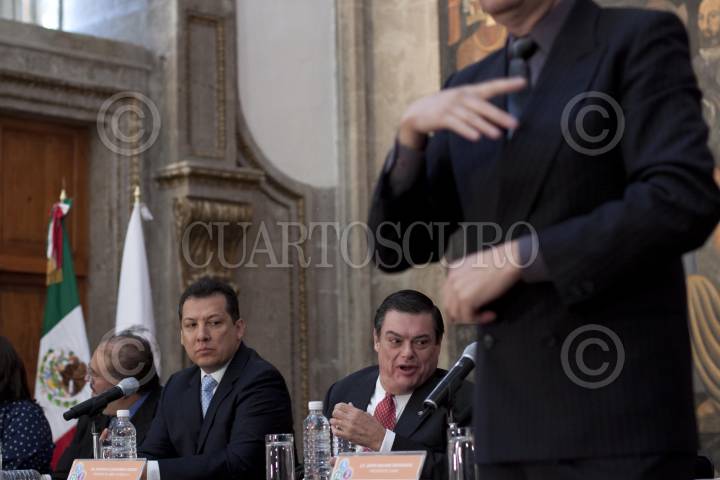 MÉXICO, D.F., 09ENERO2012.- Raúl Medina Plascencia, Presidente de la Comisión de Derechos Humanos, dio a conocer el Informe Preliminar sobre el caso de los estudiantes de Ayotzinapa y en la que mencionó que los tres poderes tienen responsabilidad de los hechos ocurridos el pasado 12 de Diciembre. FOTO: GUILLERMO PEREA/CUARTOSCURO.COM
