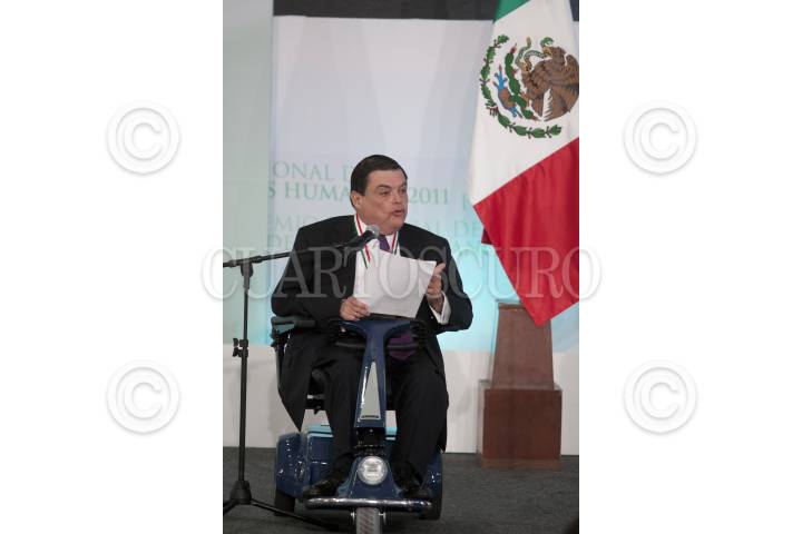 MÉXICO, D.F., 09DICIEMBRE2011.- Federico Manuel Fleischmann Loredo galardonado con el Premio Nacional de Derechos Humanos 2011, por su trabajo en la protección de los derechos humanos de las personas con capacidades diferentes. FOTO: ADOLFO VLADIMIR/CUARTOSCURO.COM