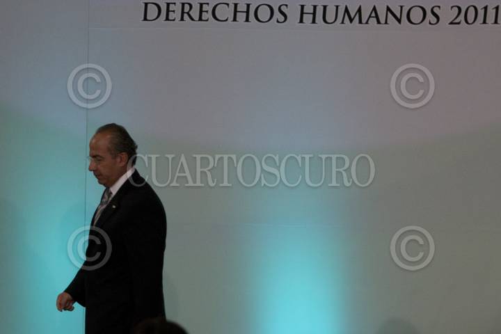 MÉXICO, D.F., 09DICIEMBRE2011.- Felipe Calderón Hinojosa, Presidente de México, durante la entrega del Premio Nacional de Derechos Humanos 2011. FOTO: ADOLFO VLADIMIR/CUARTOSCURO.COM