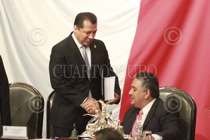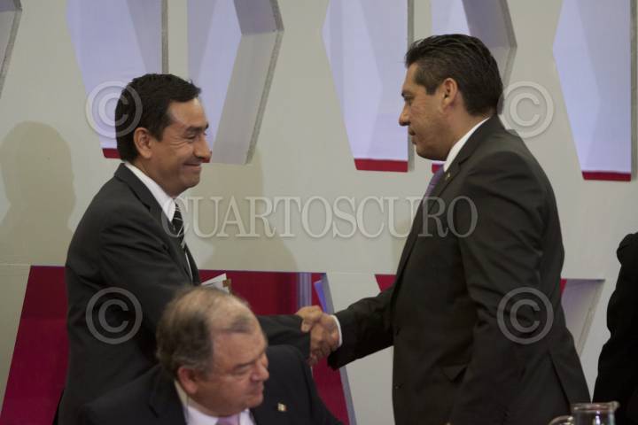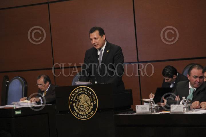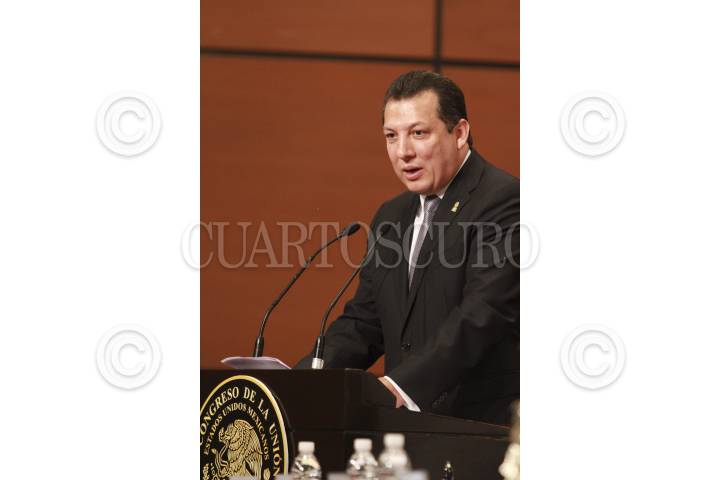 MÉXICO, D.F., 25ENERO2012.- Raúl Plascencia Villanueva, Presidente de la Comisión Nacional de Derechos Humanos (CNDH) acudió a la sesión de la Comisión Permanente donde realizó la entrega del informe de labores 2011 a Guadalupe Acosta Naranjo Presidente de la Mesa Directiva de la Cámara de Diputados. FOTO: GUILLERMO PEREA/CUARTOSCURO.COM