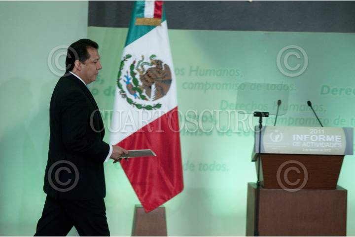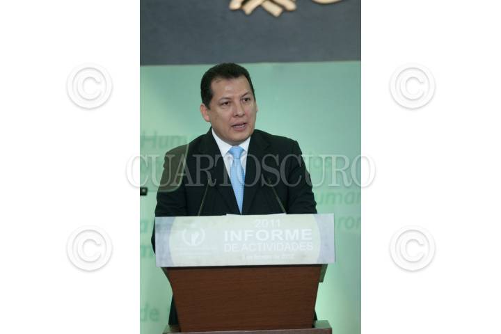 MÉXICO, D.F., 23MAYO2012.- Luis González Plasencia, titular de la Comisión de Derechos Humanos del D.F.; rindió su informe anual en la sede de la Comisión. FOTO: IVAN STEPHENS /CUARTOSCURO.COM