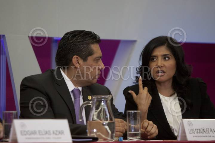 MÉXICO, D.F., 23MAYO2012.- Luis González Plasencia, titular de la Comisión de Derechos Humanos del D.F.; rindió su informe anual en la sede de la Comisión. Al acto acudio la candidata al senado por el PRD Alejandra Barrales Magdaleno. FOTO: IVAN STEPHENS /CUARTOSCURO.COM