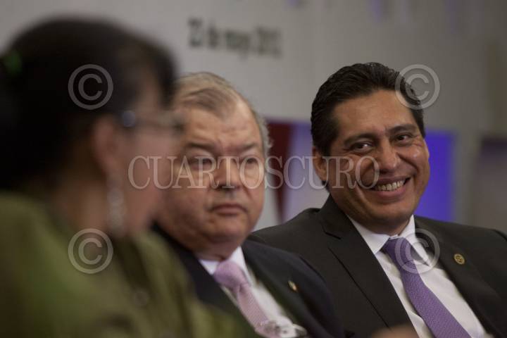 MÉXICO, D.F., 23MAYO2012.- Luis González Plasencia, titular de la Comisión de Derechos Humanos del D.F.; rindió su informe anual en la sede de la Comisión. Al acto acudió Edgar Elías Azar. FOTO: IVAN STEPHENS /CUARTOSCURO.COM