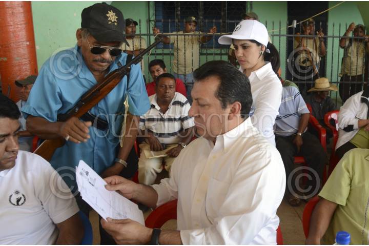 AYUTLA DE LOS LIBRES, GUERRERO, 07MARZO2013.- El titular de la Comisión Nacional de los Derechos Humanos, Dr. Raúl Plascencia Villanueva y el dirigente de la Unión de Pueblos y Organizaciones del Estado de Guerrero, Bruno Plácido, se reunieron la tarde de hoy en este poblado donde pidieron la intervención de este organismo ante las omisiones para atender el llamado de auxilio por la inseguridad que se vive ante los delitos de secuestro y extorsión. La CNDH manifestó que las autoridades deben de emprender acciones urgentes de prevención y profesionalización de los cuerpos policíacos. En la imagen habitantes del pueblo de Ahuacachague, mantienen retenes para inhibir los delitos. FOTO: BERNANDINO HERNÁNDEZ /CUARTOSCURO.COM