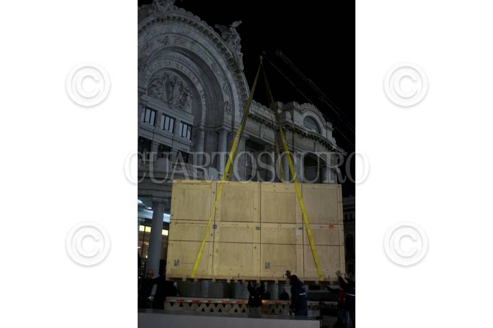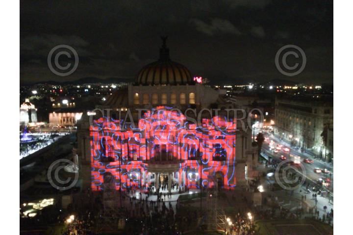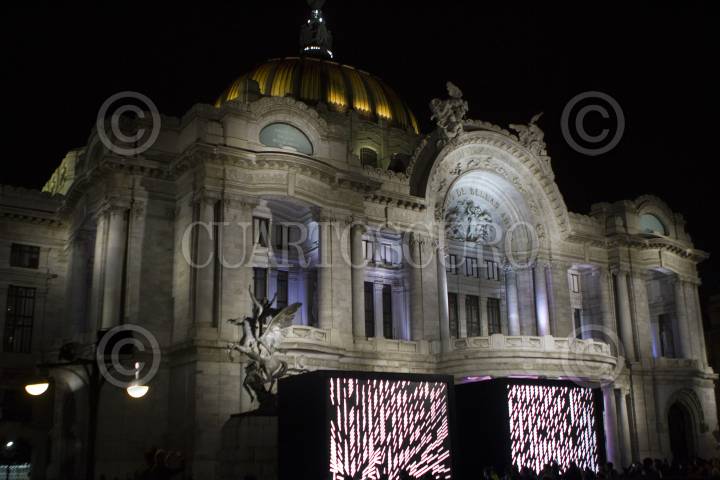 MÉXICO, D.F., 03FEBRERO2015.- "Control no control" es la pieza del colombiano Daniel Iregui instalada en la explanada del Palacio de Bellas Artes que se presenta como parte del festival Visual Art Week (VAW) México, en el marco de las actividades del “Año de la luz y las tecnologías basadas en ella”. FOTO: IVÁN STEPHENS /CUARTOSCURO.COM