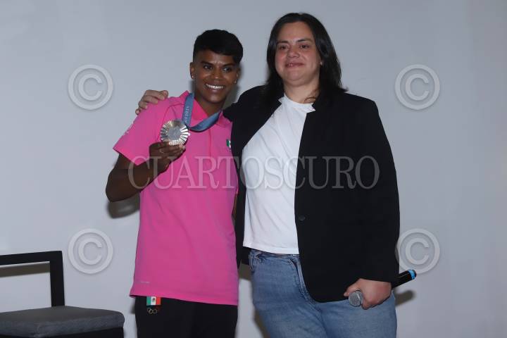 CIUDAD DE MÉXICO, 07AGOSTO2024. Conferencia de prensa con la judoka Prisca Awiti Alcaraz, medallista de plata en los Juegos Olímpicos de Paris 2024 y a su lado la también ex deportista Vanessa Zambotti. FOTO: EDGAR NEGRETE LIRA/CUARTOSCURO.COM