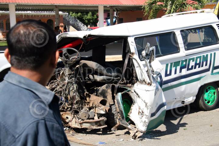 VILLAHERMOSA, TABASCO, 26ENERO2009.- Sobre el periférico de la colonia Casa Blanca, dos mujeres menores de edad perdieron la vida y otras tres personas resultaron gravemente heridas cuando en la unidad de transporte publicó en el que viajaban se impactara con un Nissan Platina provocando que tras el choque invadieran el carril contrario y colicionaran con un camión de carga. FOTO: MARCO POLO GUZMÁN HERNÁNDEZ/CUARTOSCURO.COM.