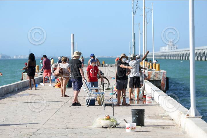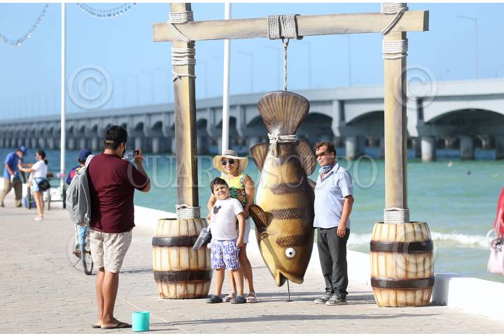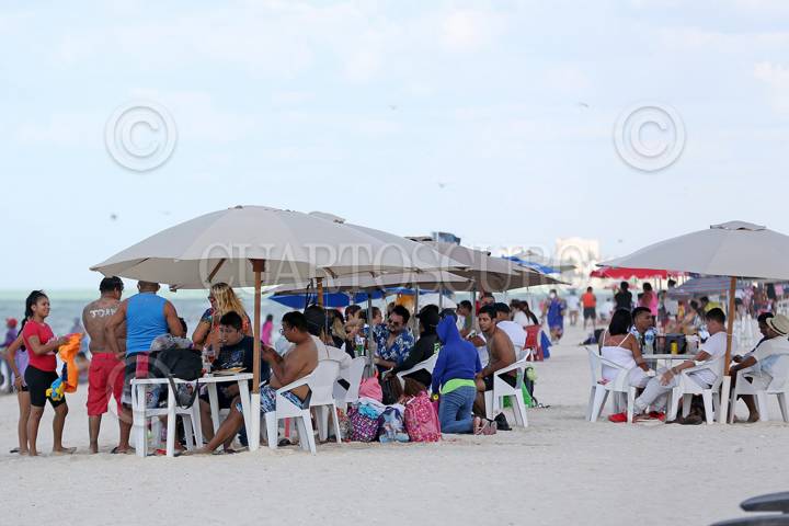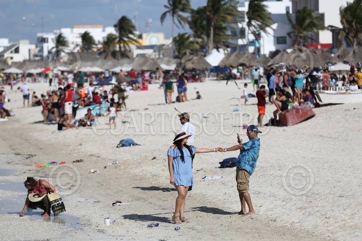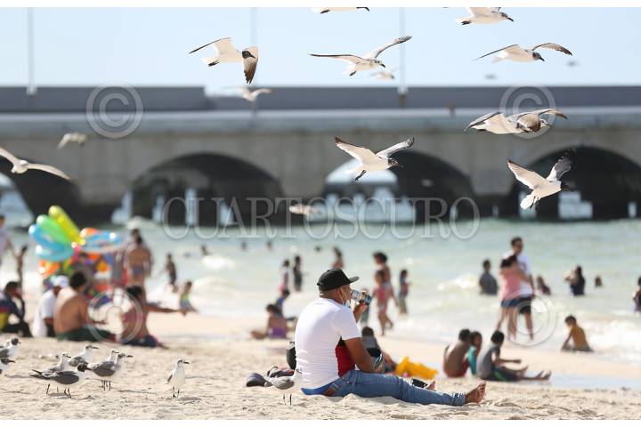 Cientes de turistas abarrotaron la playa de Progreso, esto a pesar de que el estado se encuentra en semáforo naranja de la alerta epidemiológica por la pandemia de Covid-19 que afecta a todo el país.