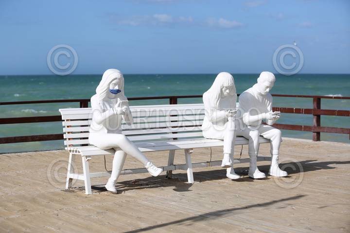 PROGRESO, YUCATÁN, 04JULIO2024.- Turistas locales e internacionales visitaron la estatua de Poseidón que se encuentra instalada en la Playa de Puerto Progreso. Esta pieza fue instalada por el ayuntamiento con el objetivo de convertirse en un atractivo turístico. En los últimos días se ha hecho viral, a través de las redes sociales, una convocatoria para retirarla ya que las personas consideran que su presencia ha desatado la ira del dios maya Chaac por estar admirando a dioses extranjeros y en castigo a mandado varias tormentas, como el huracán Beryl que está próximo a tocar el sureste mexicano. FOTOS MARTÍN ZETINA/CUARTOSCURO.COM