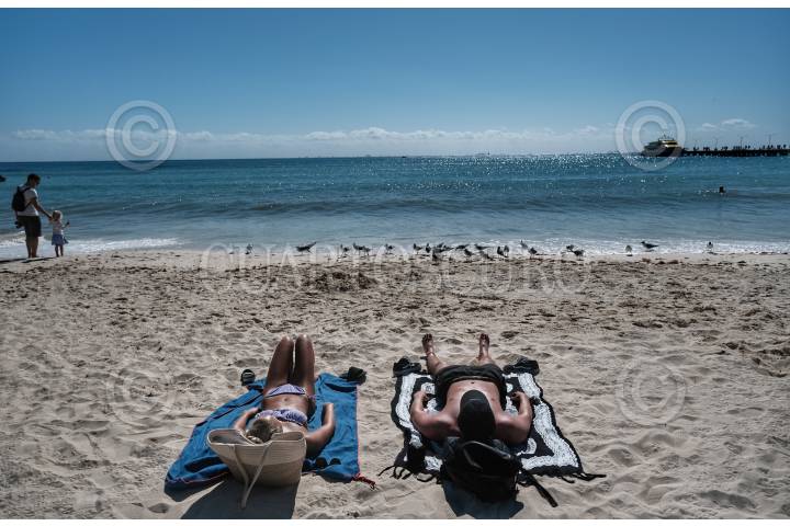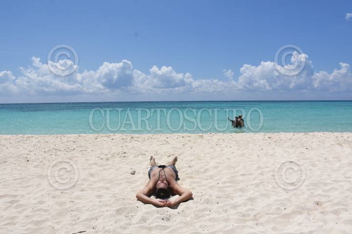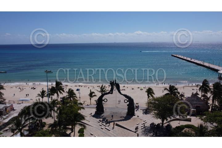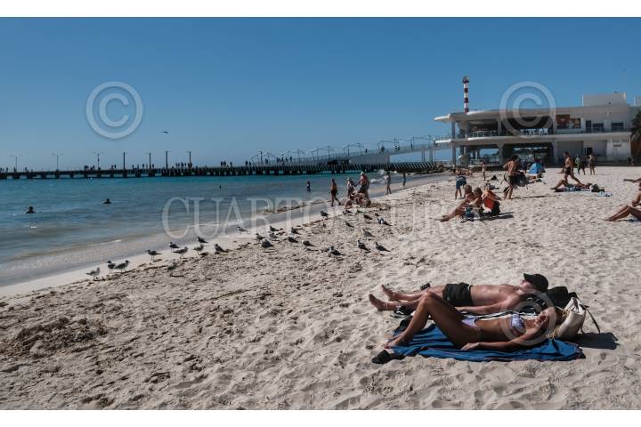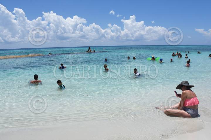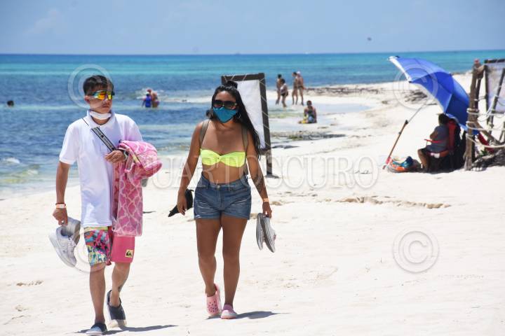 Turistas disfrutan del sol, arena y mar en Playa del Carmen, la cual luce sin sargazo.
