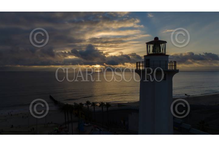 TIJUANA, BAJA CALIFORNIA, 21 JULIO 2025.- Atardecer visto desde el malecón de Playas de Tijuana, lugar al que acuden personas a pasear, hacer ejercicio y observar el entorno. En la imagen un faro en la costa. FOTO: OMAR MARTÍNEZ / CUARTOSCURO.COM