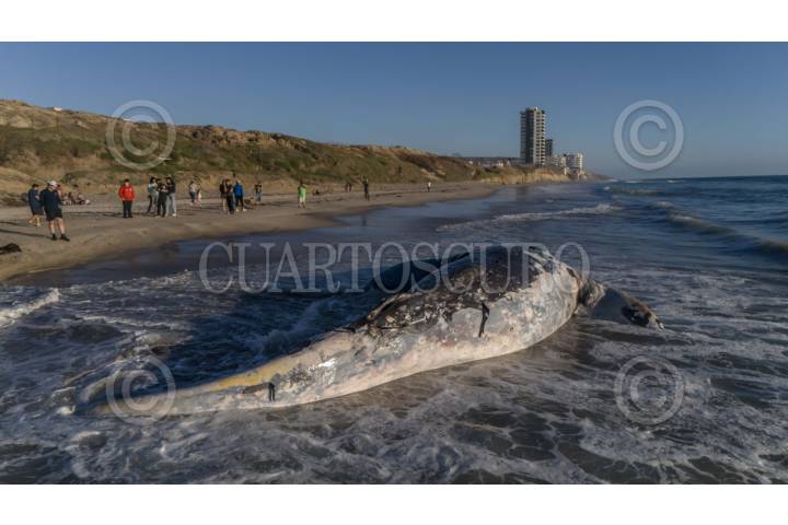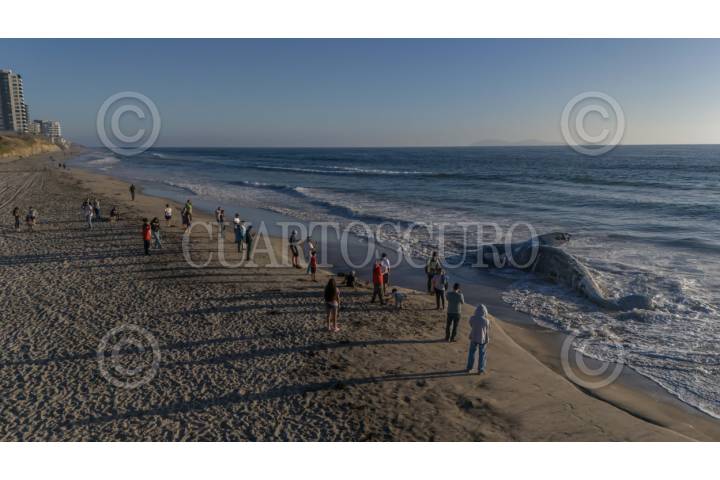 TIJUANA BAJA CALIFORNIA 18AGOSTO2025.- Cuerpo de una ballena sin vida en Playas de Tijuana. El cuerpo de una ballena fue hallada en la orilla de Playas de Tijuana, la tarde del lunes 18 de agosto cerca de la Estación de Salvavidas #14 en las inmediaciones del fraccionamiento La Perla. El hallazgo generó sorpresa entre las personas que se encontraban en la playa, quienes se acercaron para tomar fotos y videos. Autoridades municipales informaron la activación del protocolo para mamíferos marinos varados en coordinación con La Procuraduría Federal del Protección al Ambiente. (PROFEPA). FOTO: OMAR MARTÍNEZ/ CUARTOSCURO.COM