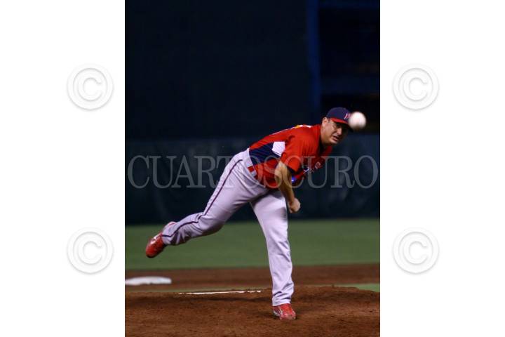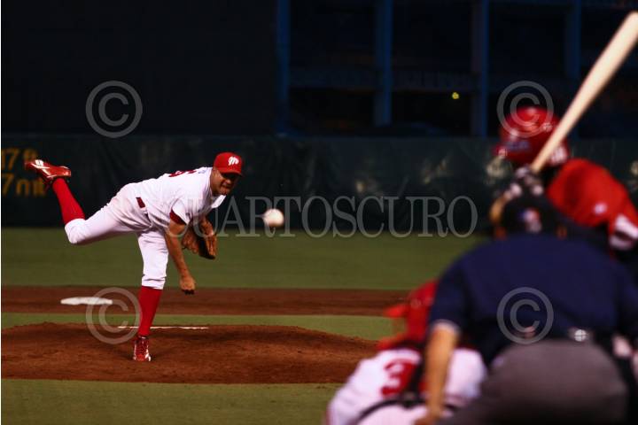 MÉXICO, D.F., 29JULIO2008.- El pitcher de los Diablos Rojos, Elmer Dessens, durante el primer juego de postemporada contra los Piratas de Campeche, disputado en el Foro Sol de la ciudad de México, el cual se encuentra 5 carreras a 3 en la séptima entrada, en favor de los locales. FOTO: ISAAC ESQUIVEL/CUARTOSCURO.COM