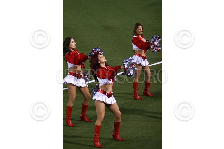 MÉXICO, D.F., 09AGOSTO2009.- Bellas edecanes animan a los Diablos Rojos del México, que caen por 14-2 ante los Vaqueros Laguna, en la parte alta de la 8octava entrada, durante el último partido de la serie de playoffs disputado en el Foro Sol. FOTO: ISAAC ESQUIVEL/CUARTOSCURO.COM