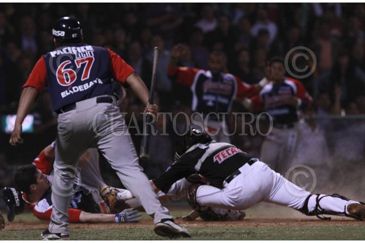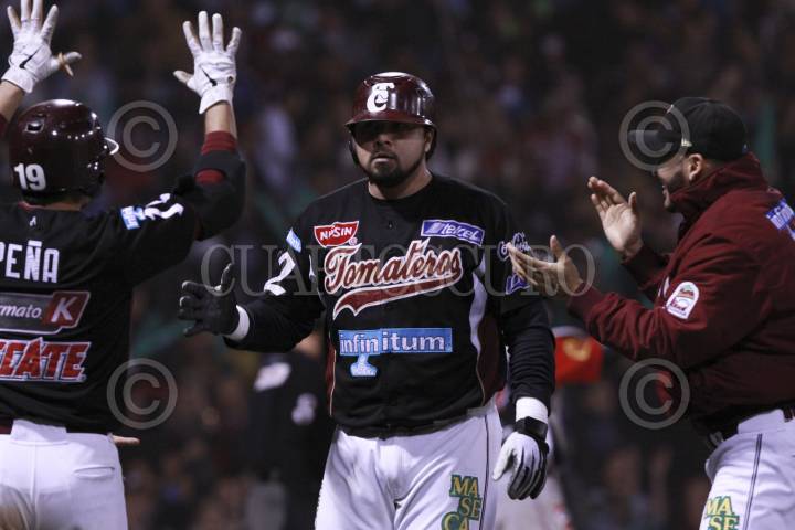CULIACAN, SINALOA, 19ENERO2012.- Ayer por la noche se jugo el sexto partido de la serie de playoffs entre el equipo tomateros de Sinaloa y algodoneros de Guasave donde le ultimo gano el juego para pasar a la final de la liga mexicana del pacifico quedando 4-3 en el resultado final de la serie. FOTO: RASHIDE FRIAS/CUARTOSCURO.COM