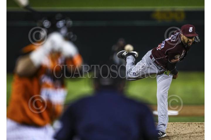 HERMOSILLO, SONORA, 07ENERO2017.- Daniel Rodriguez, pitcher abridor de Tomateros, durante el partido de beisbol entre Naranjeros vs Tomateros de Culiacán, quinto de la serie de playoffs de la Liga Mexicana del Pacifico 20016-2017. FOTO: LUIS GUTIÉRREZ / NORTEPHOTO.COM /CUARTOSCURO.COM