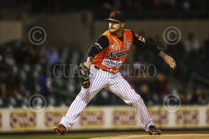 HERMOSILLO, SONORA, 07ENERO2017.- Gerardo Sanchez, pitcher de Naranjeros, anoche durante el 4to. partido de beisbol entre Naranjeros vs Tomateros de Culiacan, de la Series de playoffs de la Liga Mexicana del Pacifico LMP 20016-2017. FOTO: LUIS GUTIÉRREZ / NORTEPHOTO.COM /CUARTOSCURO.COM