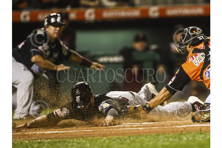 HERMOSILLO, SONORA, 07ENERO2017.- Rayan Lollis llega safe a home en una barrida, durante el partido de beisbol entre Naranjeros vs Tomateros de Culiacán, quinto de la serie de playoffs de la Liga Mexicana del Pacifico 20016-2017. FOTO: LUIS GUTIÉRREZ / NORTEPHOTO.COM /CUARTOSCURO.COM
