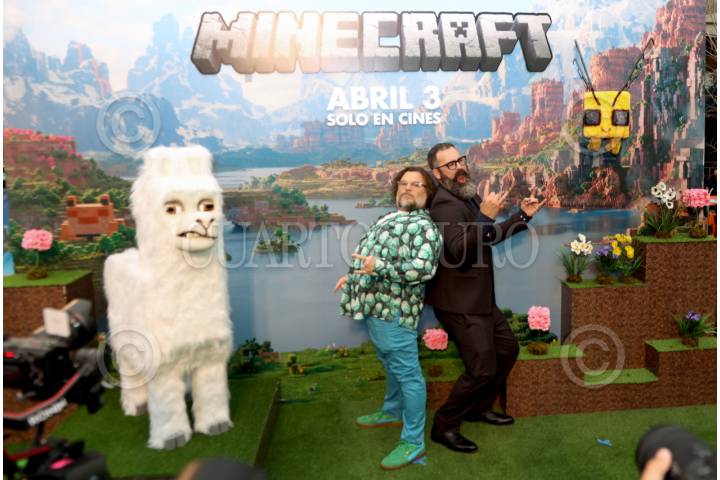 NAUCALPAN, ESTADO DE MÉXICO, 22MARZO2025. Jack Black y Jared Hess a su paso por la alfombra verde del Fan Event de “Una película de Minecraft”, que se llevó a cabo en un centro comercial en el Estado de México. FOTO: EDGAR NEGRETE LIRA/CUARTOSCURO.COM