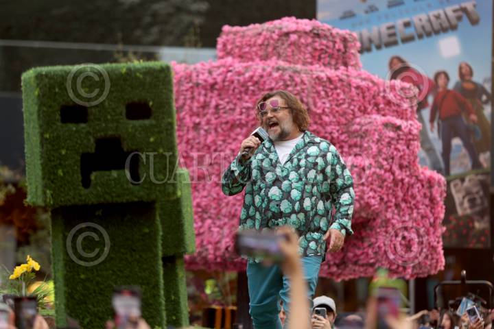 NAUCALPAN, ESTADO DE MÉXICO, 22MARZO2025. Jack Black a su paso por la alfombra verde del Fan Event de “Una película de Minecraft”, que se llevó a cabo en un centro comercial en el Estado de México. FOTO: EDGAR NEGRETE LIRA/CUARTOSCURO.COM