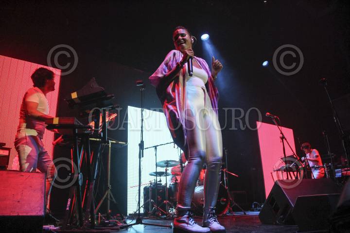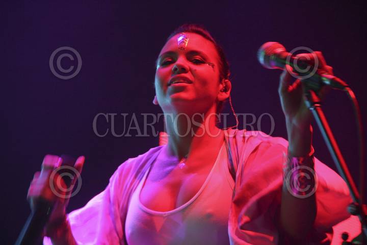 MÉXICO, D.F., 16AGOSTO2015.- La noche de ayer se presentó en el foro Plaza Condesa el grupo colombiano Bomba Estéreo, como parte de su tour "Amanecer", su cuarto álbum discográfico. Liliana Saumet (Voz), Simón Mejía (bajo y sintetizadores) y Julián Salazar (guitarra y sintetizadores), pusieron a bailar al público con la mezcla de música electrónica, rock, reggae, cumbia y la champeta. FOTO: FELIX MÁRQUEZ /CUARTOSCURO.COM