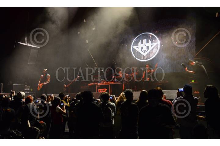 MÉXICO, D.F., 27NOVIEMBRE2015.- La quinta edición del festival de música metal “Hell and Heaven” fue anunciado en conferencia en el Plaza Condesa. Jorge Islas y José Luis, organizadores del festival, dieron algunos adelantos del cartel de las bandas que se presentarán, entre las cuales se encuentra “Rammstein”. La presentación culminó con un breve concierto de la banda de metal nacional “Tanus”. FOTO: GALO CAÑAS /CUARTOSCURO.COM